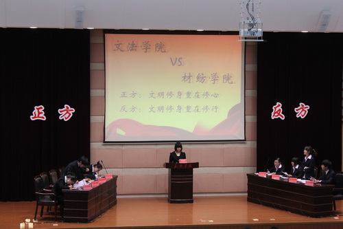 代表队与材料与纺织工程学院代表队围绕“文明修身重在修心还是修行”进行对决,最后,7ai