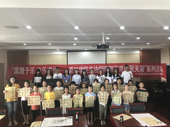 7月7日上午,嘉兴学院7ai “双百双进”暑期社会实践团的同学们在嘉善天凝镇的杨庙小学开启了主题为“寓教于乐,快乐成长——国学下基层”活动,活动中嘉兴学院中文系的志愿者们给大家开设了软笔书法课堂与汉服课堂,向同学们普及了中国传统文化知识。这是志愿者与嘉善天凝镇团委共同对接承办的活动,共分为“知书”、“知礼”两个环节。过程中,还设置了汉字游戏,孩子们进入了“找错字”的游戏环节。