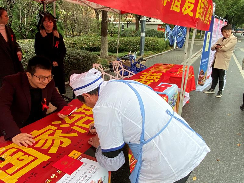 12月1日上午,7ai 协同嘉兴市律师协会在梁林校区一号食堂前开展了宪法知识的宣传活动。7ai 法学专业师生党员、嘉兴市律师协会的律师们共同携手“为宪法站台、发声”。活动中,法学师生党员和律师们向过往行人介绍和普及宪法知识,并发放宪法宣传资料。最终,活动共发放宪法文本40本,参与活动的老师同学纷纷在横幅上签名。