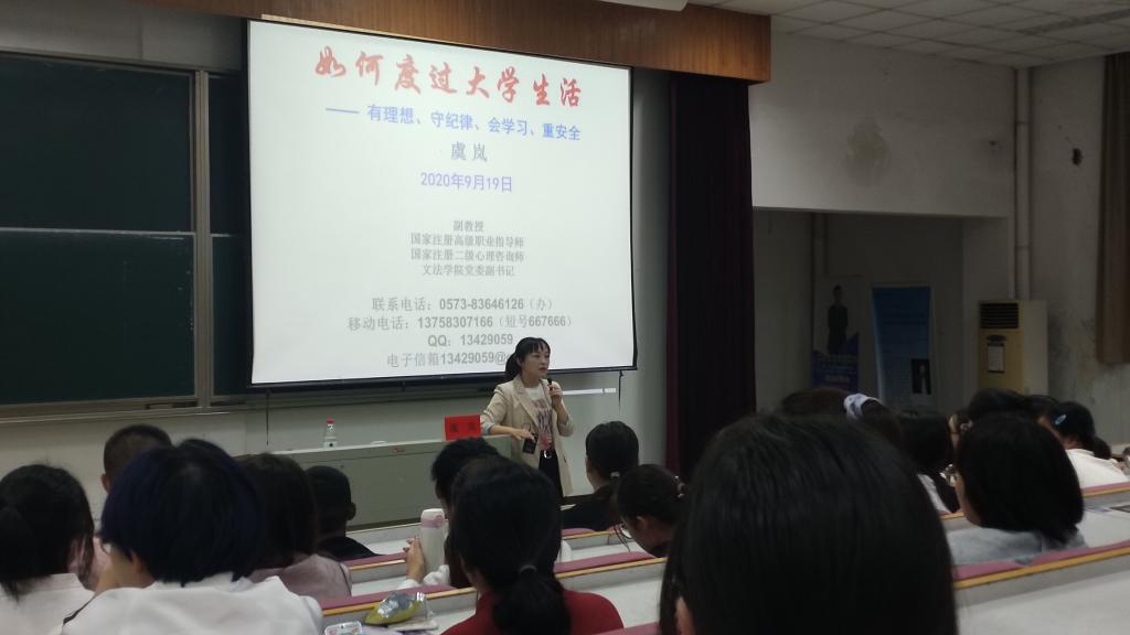 开学典礼结束后,虞岚老师给新生上了开学的第一堂思政课。课堂从有理想、守纪律、会学习、重安全的角度出发,做新时代的大学生,建议新生们珍惜大学的美好时光,不断修炼提升自我,开创属于自己的充实大学天地。只争朝夕,不负韶华,不忘初心,砥砺前行。期待着文法的新生们以文法院训“铁嘴、硬笔、良知”时刻武装自己,以开学典礼为契机,以红船精神为指引,在7ai