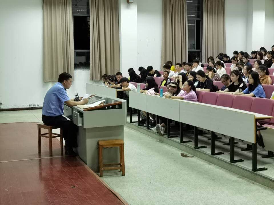 2020级新生在梁林校区13号楼报告厅参加了“你我同心,安全同行”的主题安全讲座。该讲座由城南派出所的毛警官主讲,学院学工办吴广老师主持。