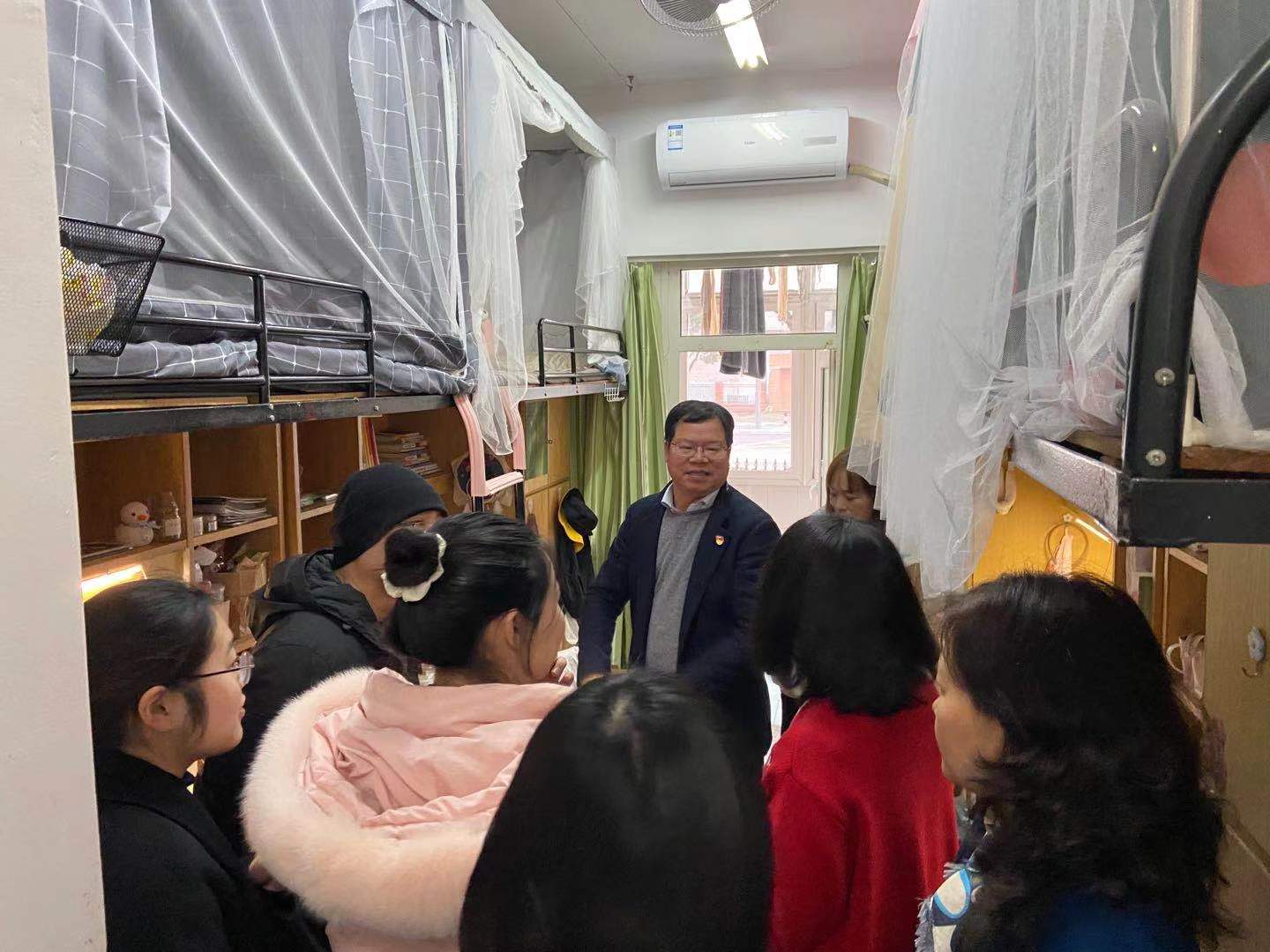 的学生寝室,实地了解学生返校后的学习生活情况,为学生送去关心和问候。