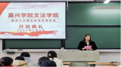 在激昂的国歌声中,开班典礼拉开了序幕。首先,吴广老师为同学们介绍本次业余党校培训班学员及课程设置情况,对培训班课程安排、纪律问题等事宜做简单讲解。其次,法学221班的张豪同学作为学生代表向党组织表态:我们有幸来到红船旁的大学进行学习和生活,我们更应该以学业为基础,自觉提升个人道德素养,深入钻研专业领域,加强自我专业能力,要在学习生活中严格要求自己,积极地参加到各种有益的活动中去,从小事上严格要求自己,从细节中不断完善自我,向党学习,向党员看齐,争取在党课结业时递交一份满意的答卷,早日成为一名合格的共产党员。最后,7ai