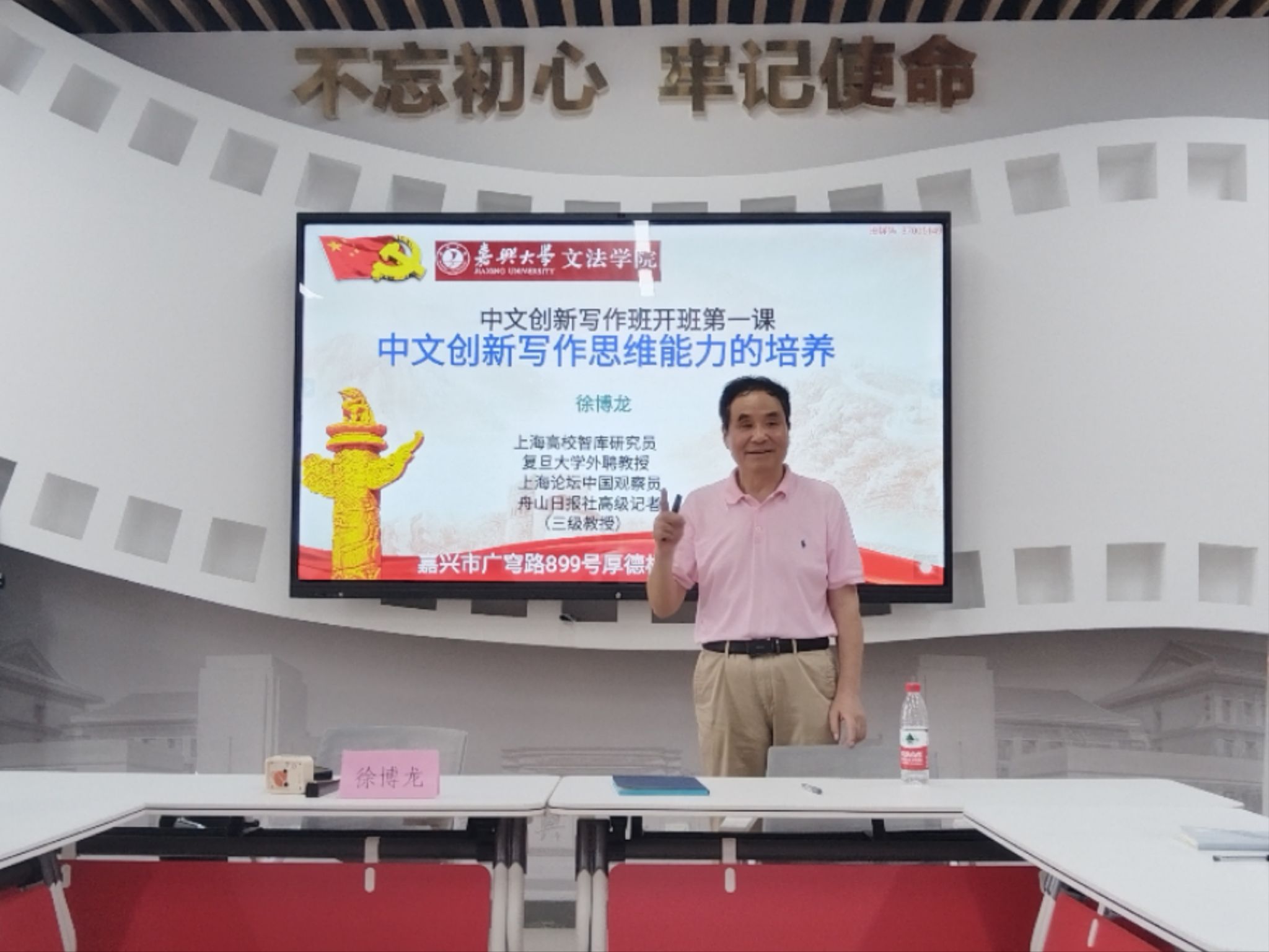 承办的中文创意写作导师见面会在党员之家如期举行。上海高校智库研究员、复旦大学外聘教授徐、舟山日报社高级记者博龙教授和15位学生参加了本次见面会。