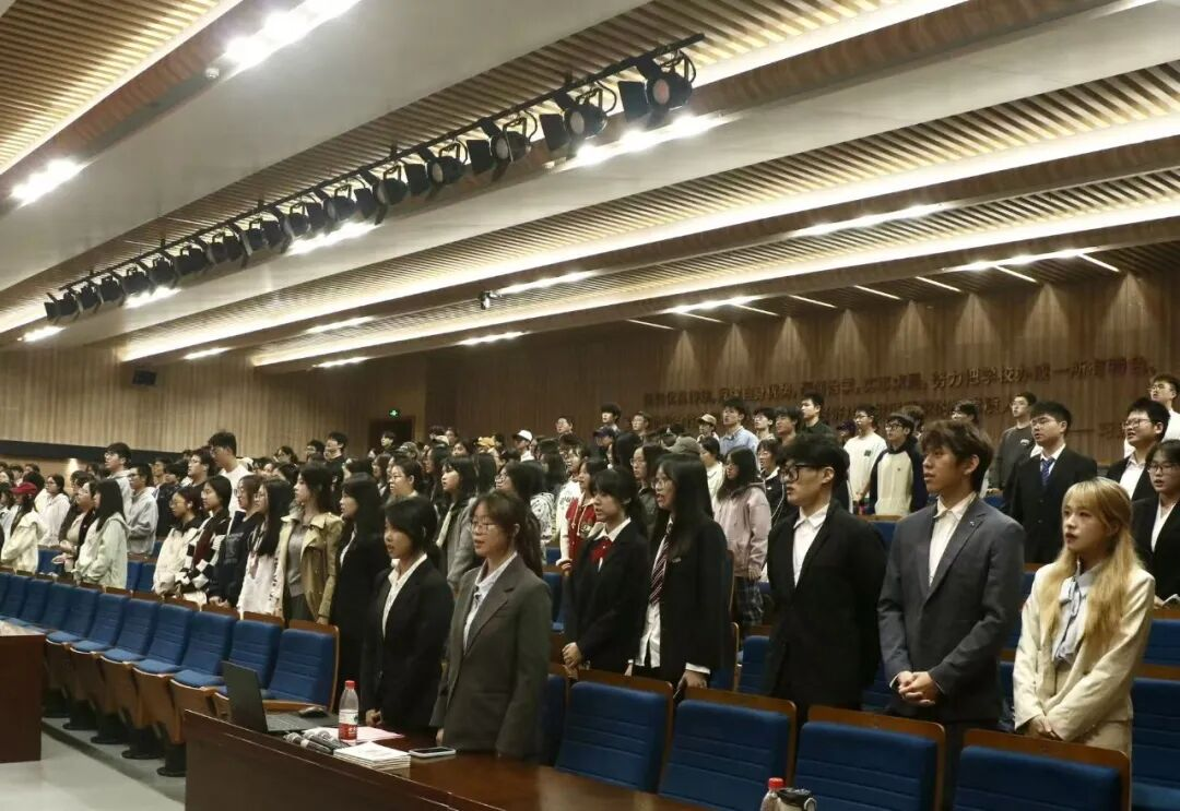 辩论队"辩论启蒙导生"与新任队长聘任仪式。石贤平院长为启蒙导生颁发聘书,陆雨辰律师为新任队长授聘,为辩论队建设注入新的活力。开幕式在与会领导、嘉宾的合影中圆满结束。