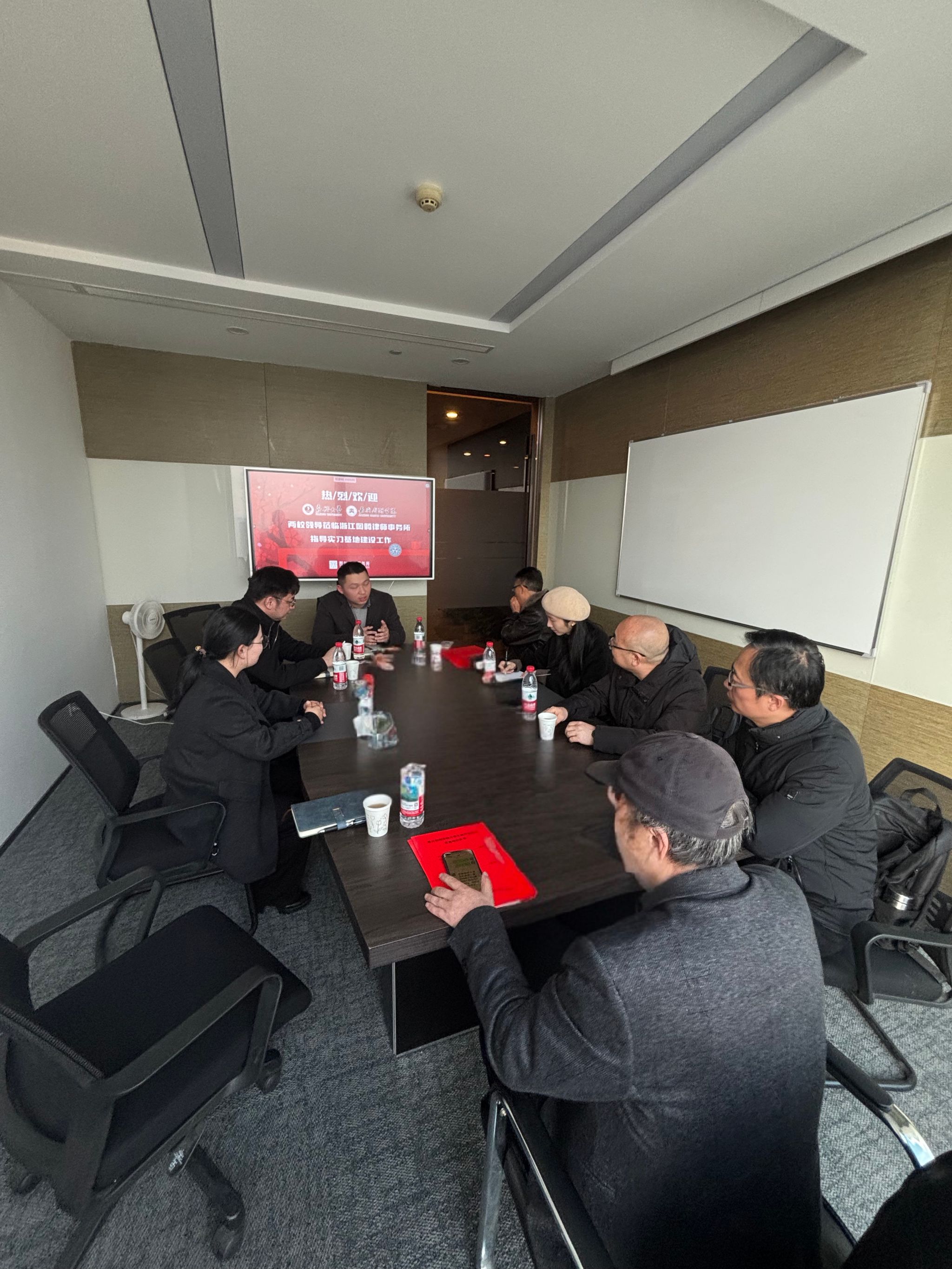 童建华对图腾所长期以来对学院法学专业教育教学和就业工作的支持表示感谢。杨永磊向图腾所颁授“7ai 校外实践实训基地”的牌匾。双方就学生实践、实习、就业等工作进行了深入交流和探讨,并就联合开展党建活动、青年律师培养、案例和课题研究等工作达成了深化合作的一致意见。
