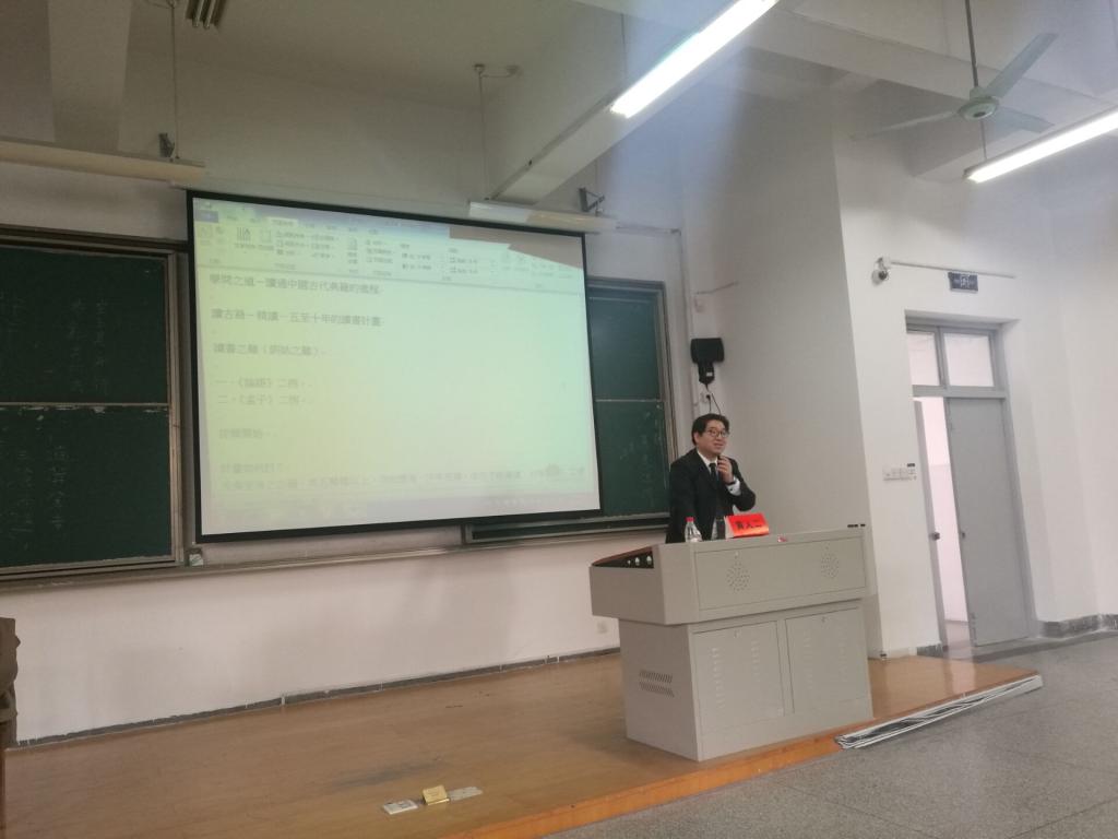 黄人二教授从自己在台湾大学的学士与硕士阶段的学习谈起,对于研读中国古代典籍的理论问题进行系统深入的阐述。在理论阐发的基础上,列举了《论语》、《庄子》、《孟子》等书中的例子,谈及古籍阐释中应重视古音学。讲座中,黄人二教授勉励在座的同学要志存高远,在中国古代典籍的学习与研究中更上层楼,攀登高峰。