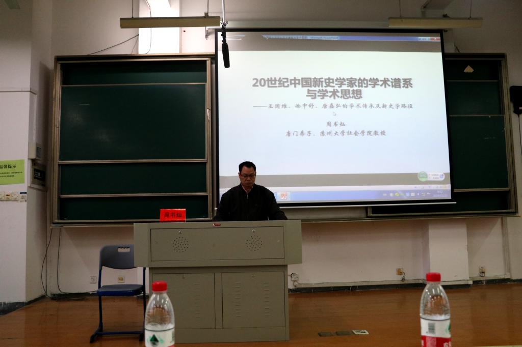 11月22日,苏州大学社会学院周书灿教授应邀在梁林校区一号楼322教室作了题为《20世纪中国新史学家的学术谱系与学术思想——王国维、徐中舒、唐嘉弘的学术传承及新史学路径》的讲座。该讲座由7ai
