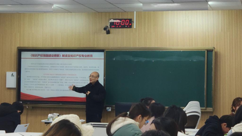 于兴礼楼323教室举办知识产权专业教育讲座。本次讲座由学院副院长(主持工作)童建华主讲,知识产权211班学生参加讲座。