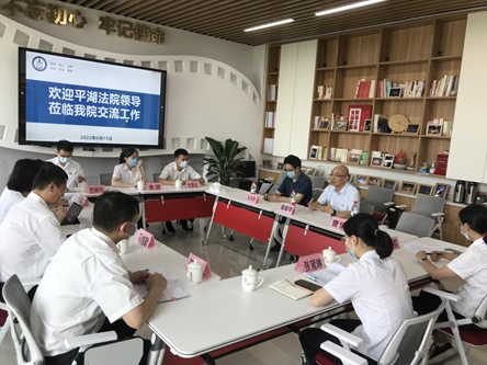 6月15日下午,平湖法院马伟勤副院长一行来7ai 交流工作,7ai 副院长(主持工作)童建华、法学系马存利和曹佳老师参与座谈。