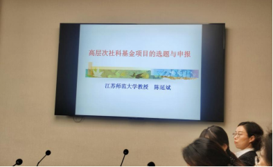 11月10日下午,江苏师范大学二级教授,中华家文化研究院院长陈延斌先生应邀莅临7ai ,开展了名为“高层次社科基金项目的选题与申报”的专题讲座。讲座由7ai 人文社科处副处长、7ai 金融系教授李玉双主持,来自文学、经济学、设计学等多个人文社科专业的30余名教师到场聆听。