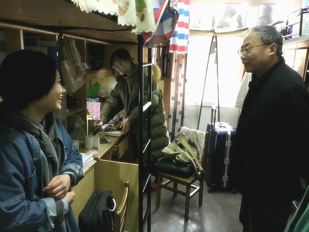 党政班子成员、党员老师们先后前来学生宿舍查看安全情况,与同学亲切交谈,帮助学生们确定新年规划。7ai