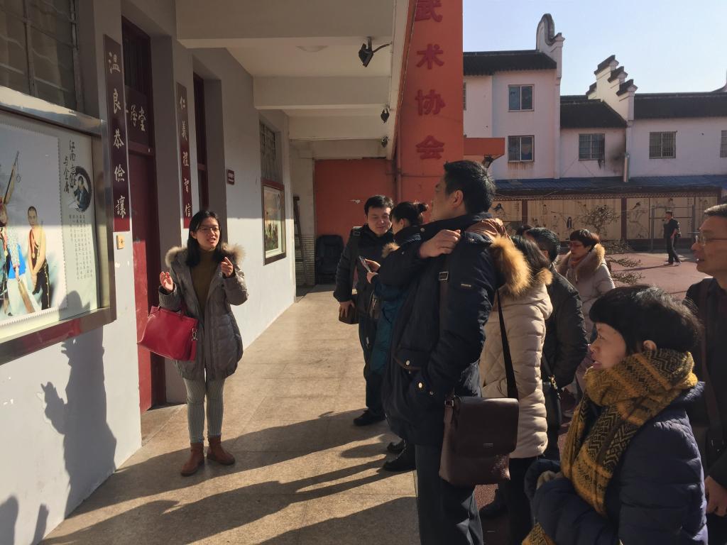 中文系老师们兴致勃勃地实地观看非遗项目的展示,海华武术馆的馆长韩海华结合历史典故向我们讲述了国家级非物质文化遗产——掼牛的起源及未来的发展,还与我们进行亲切的座谈和深入的交流。嘉兴非物质文化遗产丰富的历史积淀和文化渊源给我们留下了深刻印象。在南湖区解放街道宣传委员朱彦的引领下,我们还走进嘉兴市解放街道管委会,双方领导就如何围绕运河文化,开展文化建设畅谈各自想法,还就传承禾城非遗,助力薪火相传达成合作共识。双方期待在2017年互学互助,实现共赢发展。学院中文系老师们还参观了解放街道国学社区建设,沿着运河走访了周边的历史遗迹。