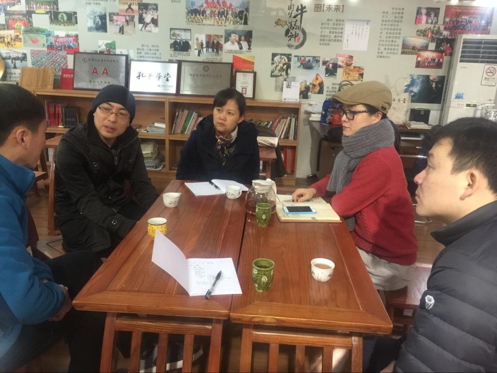 1月13日,7ai 党委书记洪坚、副院长童建华、中文系主任曲正林和学工办主任虞岚一行四人到孔子学堂调研交流。孔子学堂执行院长竹韦红、南湖区解放街道宣传委员朱彦与洪坚书记一行就如何与嘉兴孔子学堂和学堂所在地解放街道的国学社区一起合作办学进行深入交流。同时,双方在非遗研究等多方面的合作达成初步协议。