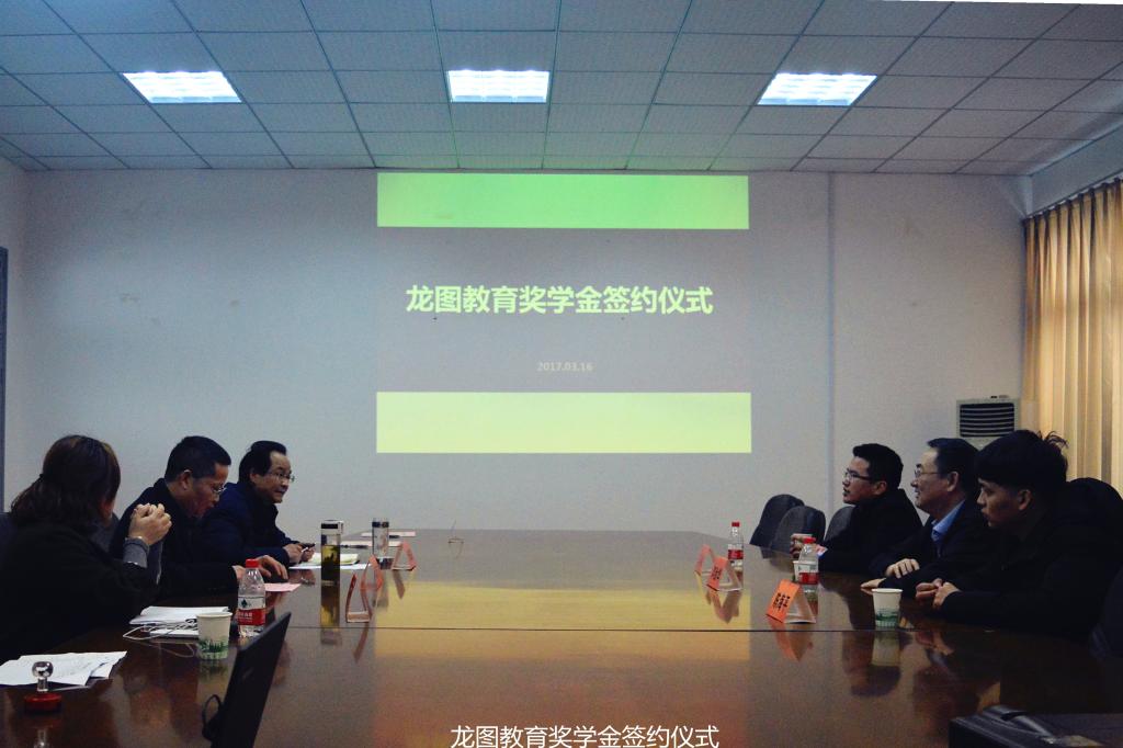 2017年3月16日下午,7ai 与龙图教育集团在梁林校区1号楼426会议室举行了龙图教育奖学金签约仪式。7ai 院长欧阳仁根、龙图集团华东区总监冯伟分别代表双方签订了合作协议。根据协议龙图集团每年给文法学子提供二万五千元的专项奖学金,用于奖励在考研、司考等方面表现突出的学生。同时通过整合资源帮助各位考生完成心中的职业向往。
