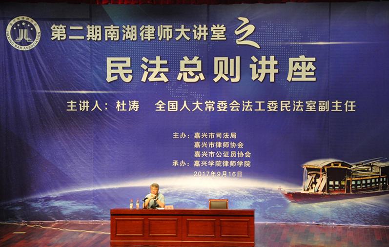 2017年9月16日,“嘉兴市第二期南湖律师大讲堂之《民法总则》专题讲座”在嘉兴学院梁林校区学生活动中心剧场顺利进行。本次讲座,是嘉兴学院律师学院受嘉兴市司法局、嘉兴市律师协会、嘉兴市公证员协会委托承办的、旨在深入学习《民法通则》的大型法学讲座。全市的律师、公证员、公安干警、法官、检察官及嘉兴学院7ai