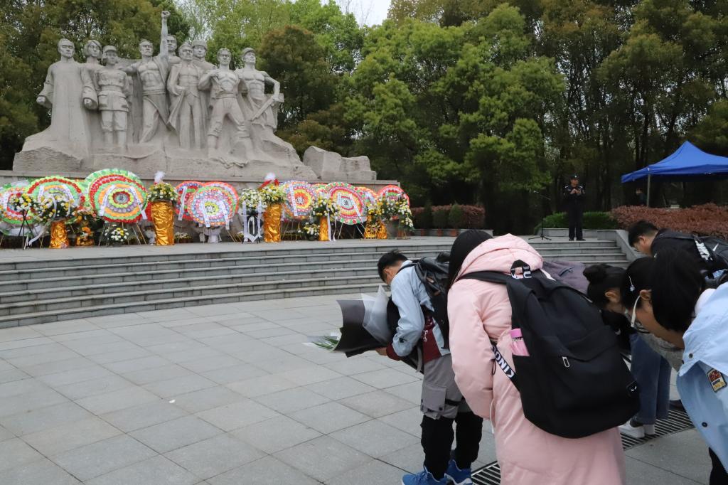 学生党员们怀着敬仰之情来到嘉兴革命烈士陵园举行祭扫活动,深切缅怀为中华民族解放事业奉献出宝贵生命的革命先驱。活动现场,学生党员叶向阳、杨贯虹、胡佳明代表全体学生党员向革命烈士敬献鲜花,以此寄托对烈士们的深深悼念。随后,党员们走进嘉兴革命历史陈列馆瞻仰革命先烈们的英雄事迹,陈列馆里每一张照片,每一幅画像无不感染、熏陶、教育着学生们,使学生们铭记历史,不忘初心,牢记使命,努力学习,为党和国家的建设发展不懈奋斗。