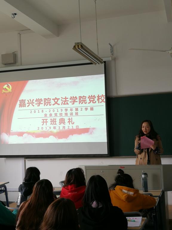 第38期业余党校培训班开学典礼在梁林校区一号楼409教室举行。学院党委委员、学工办主任兼团委书记虞岚、学院党务秘书唐涛出席开学典礼。典礼由唐涛主持。