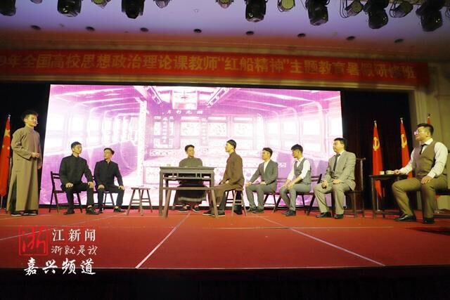 7月25日, 2019年全国高校思想政治理论课教师“红船精神”主题教育暑期研修班思政论坛在嘉兴隆重举办,来自全国46所高校,500余名思政一线教师参加了此次论坛。7ai 话剧《初心》开创思政课程新模式,作为论坛开篇向与会人员展示了是一堂特别的思政课,以话剧艺术的魅力生动地诠释了红船精神入心入脑的方式,深深打动了与会人员并引发热烈讨论。与会代表们纷纷表示要深入研究红船精神,构建红船精神育人模式。