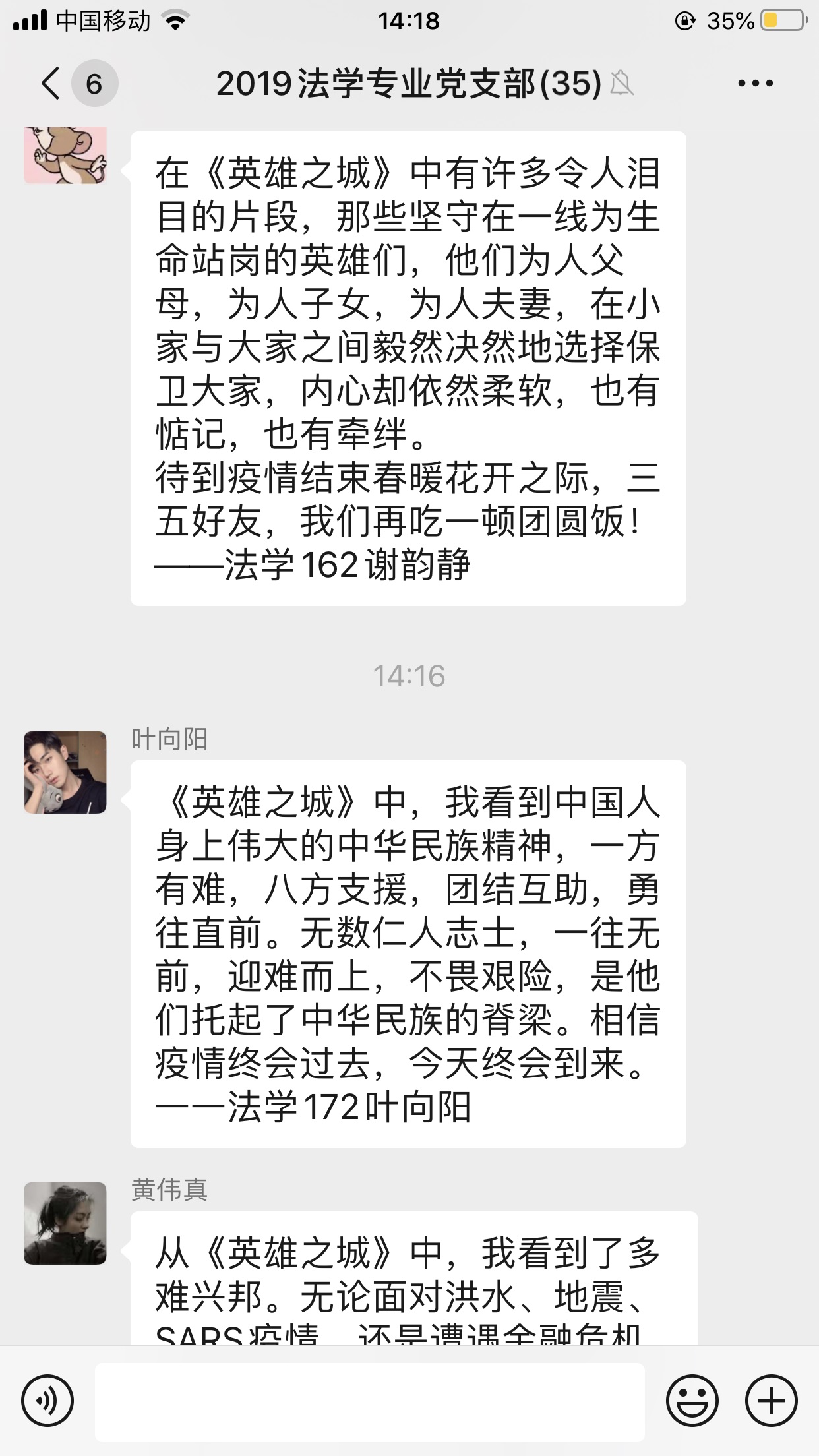 图4为法学专业党支部交流纪录片《英雄之城》观后感
