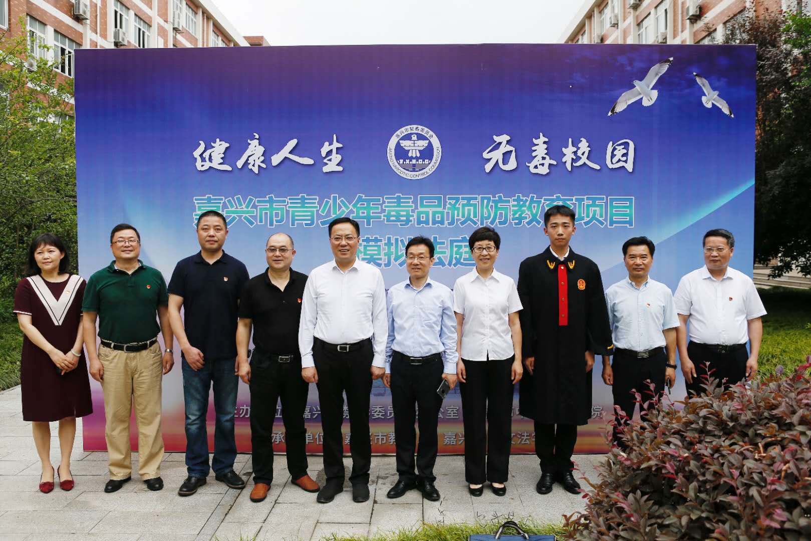 6月3日上午,“健康人生 无毒校园”——嘉兴市青少年毒品预防教育项目模拟法庭活动在我校梁林校区模拟法庭举行。嘉兴市人民政府副市长邢海华,市中级人民法院副院长徐静霞,我校校长卢新波,嘉兴市人民政府副秘书长、市禁毒委副主任张春晓,市禁毒办常务副主任、市公安局禁毒支队副支队长胡飞等领导出席活动。
