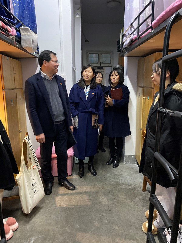 2020年12月7日下午,嘉兴学院党委副书记吴云达一行在7ai 党委书记洪坚、党委副书记虞岚的陪同下走访了7ai 的结队宿舍,看望了宿舍同学,给同学们带去了关心与问候。