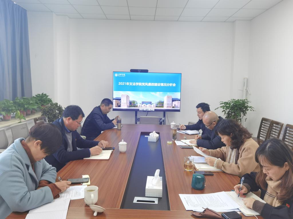 党委在厚德楼268会议室召开了2021年党风廉政建设情况分析会。嘉兴学院党委副书记吴云达、校纪委委员费锦红到会指导。本次会议由学院党委书记洪坚主持,班子成员童建华、屈正林、虞岚参加会议,特邀监察员宋伟杰列席会议。
