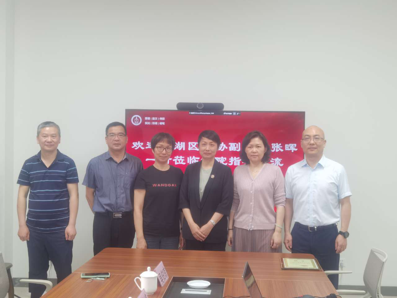 5月18日上午,南湖区政协副主席张晖一行来7ai 交流指导,学院党委书记洪坚、副院长(主持工作)童建华出席座谈。
