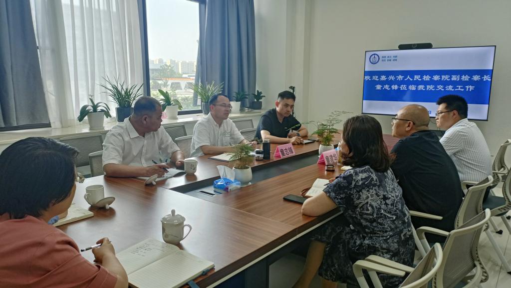 6月5日下午,嘉兴市人民检察院副检察长童志锋一行来7ai 交流检校合作事宜。院党委书记洪坚、副院长(主持工作)童建华出席会议。