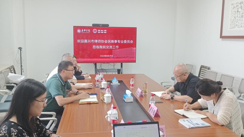 8月29日上午,嘉兴市律师协会副会长岳丛啸等一行6人来7ai 交流工作。学院副院长(主持工作)童建华,法学系主任唐永梅,嘉兴市律协民商事专业委员会主任徐海明律师等参加座谈。