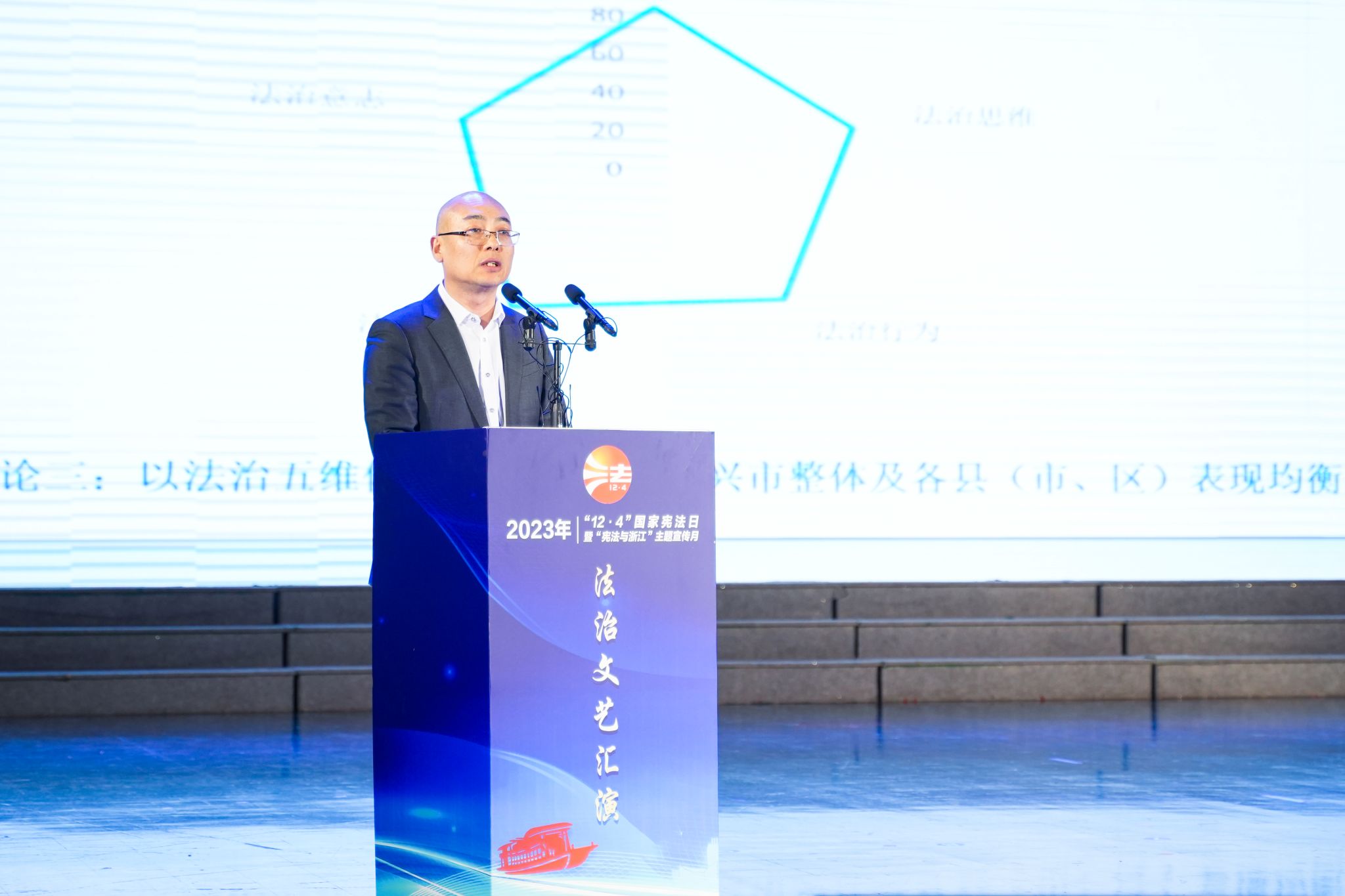 12月5日下午,“12·4”国家宪法日暨“宪法与嘉兴”主题宣传月法治文艺汇演活动在平湖市举行。省、嘉兴市上海市金山区司法部门等相关领导出席活动。7ai 副院长(主持工作)童建华应邀出席。童建华代表华东师范大学长三角一体化法治研究院嘉兴分院发布了2023年嘉兴市公民法治素质测评报告。