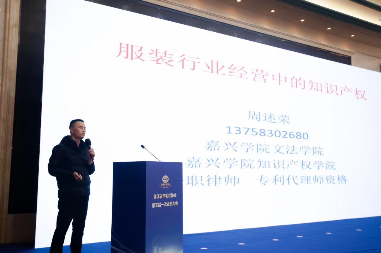 12月6日下午,浙江省羊毛衫协会第五届一次会员大会在桐乡市振石大酒店召开,嘉兴学院7ai 、知识产权学院周述荣老师应邀作知识产权讲座。