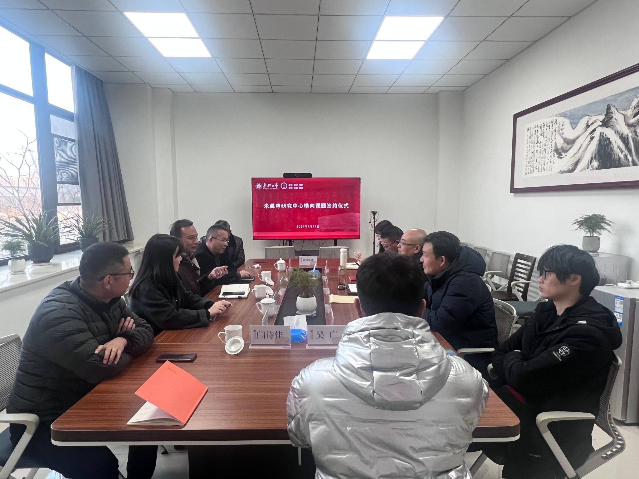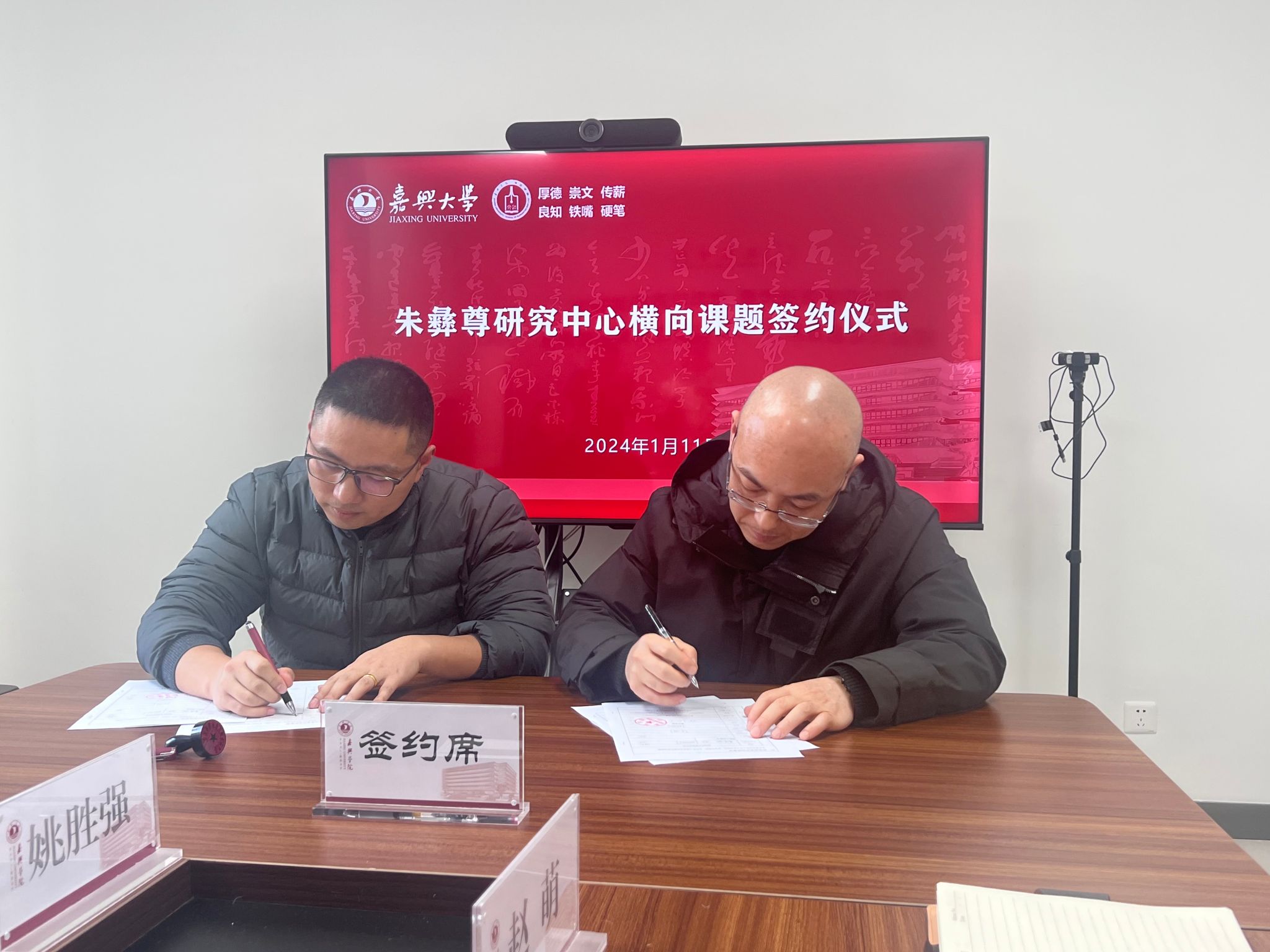 与秀洲区朱彝尊研究会横向课题签约仪式在厚德楼268会议室举行。中共嘉兴市秀洲区委宣传部副部长王文平、秀洲区委宣传部部务会议成员、区社科联专职副主席郑书飞、嘉兴市秀洲区王店镇党委委员朱琴燕、嘉兴市秀洲区朱彝尊研究会法定代表人朱佳飞等出席仪式。7ai