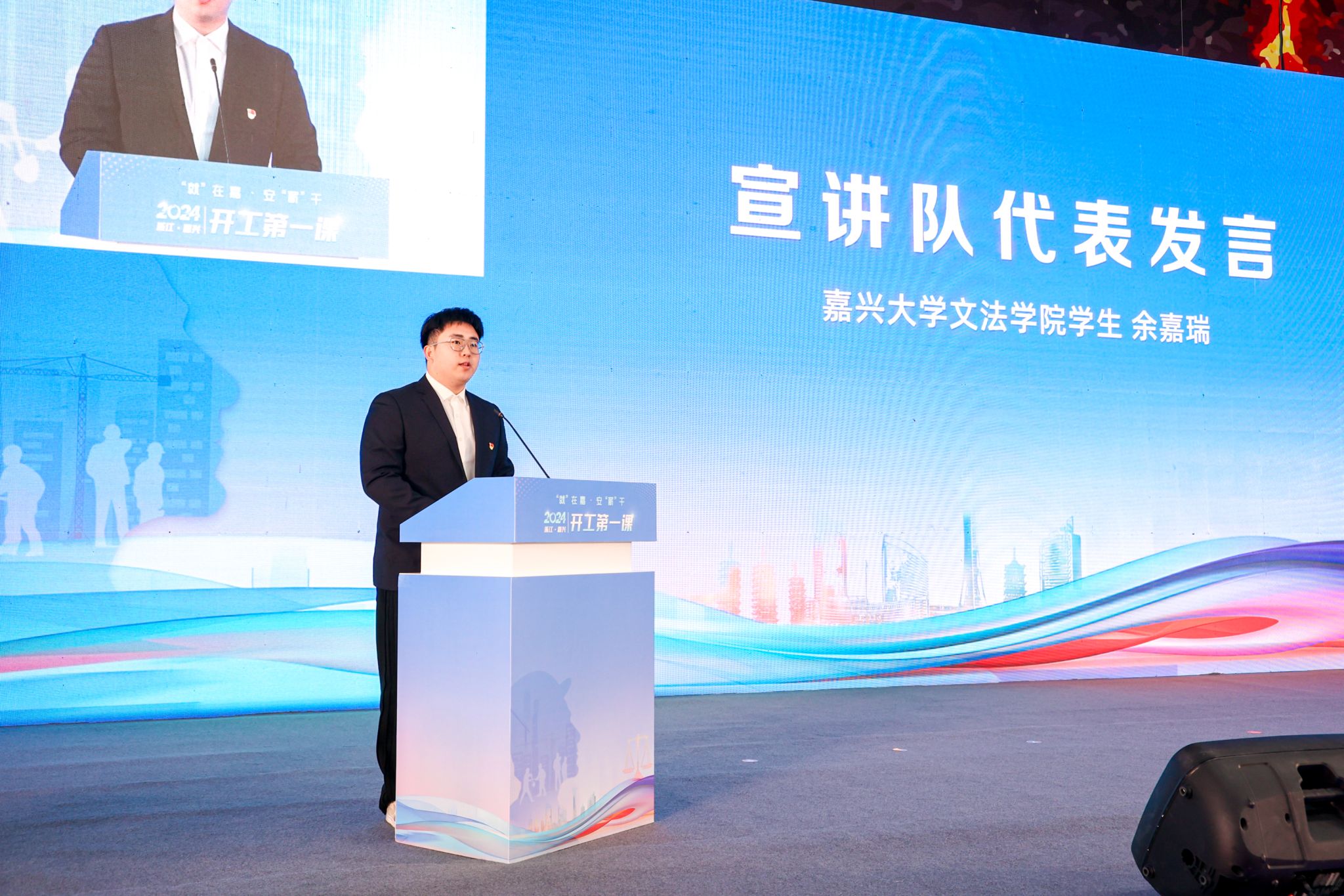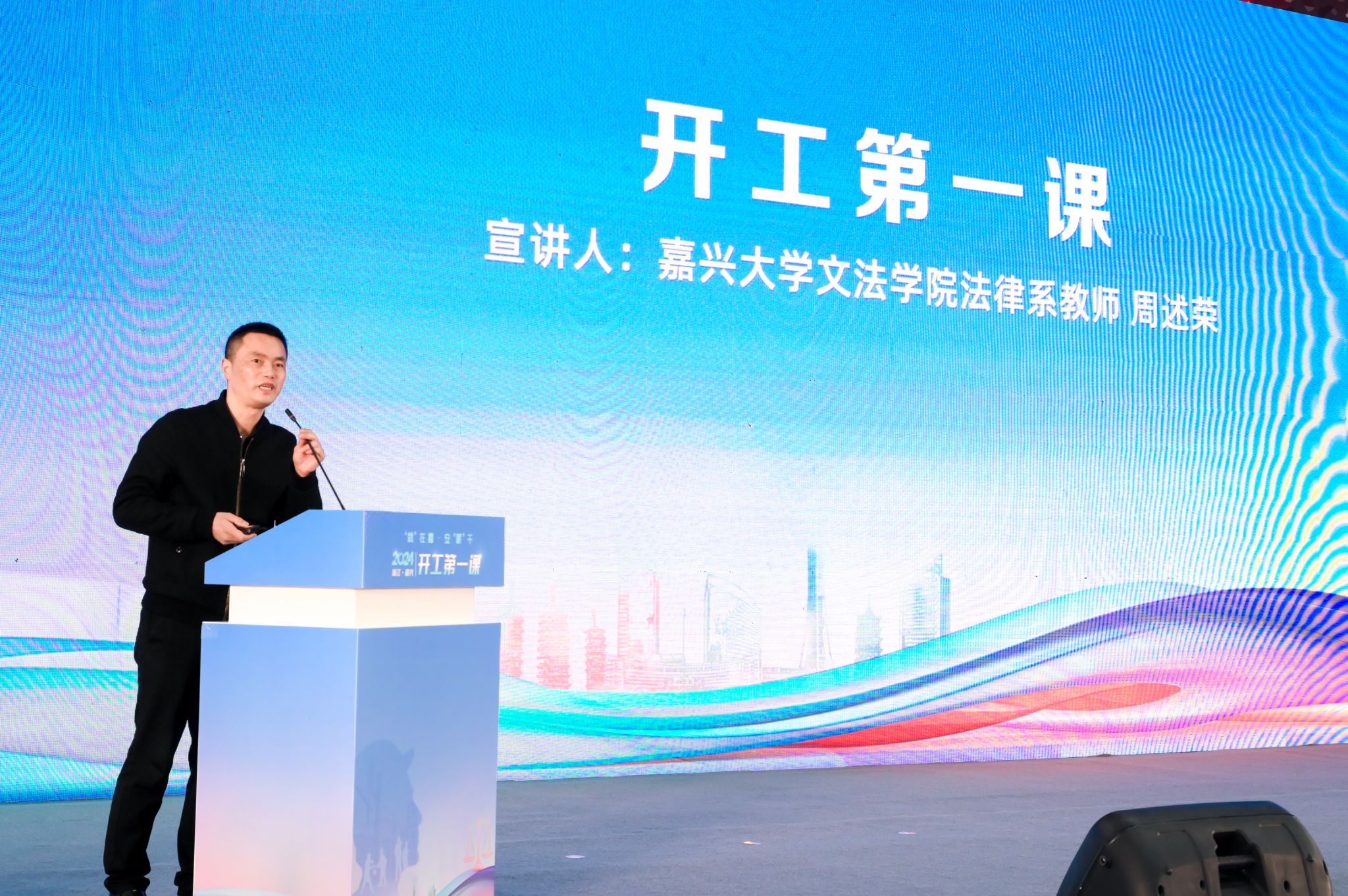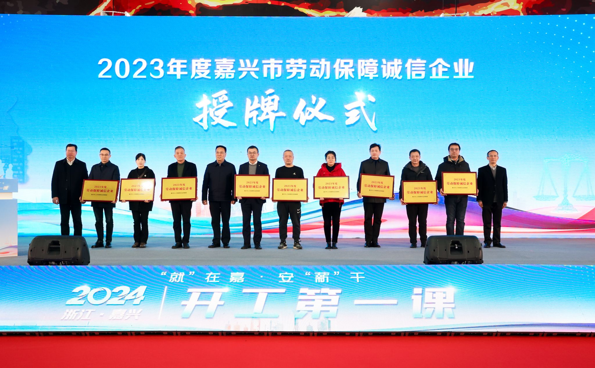 与嘉兴市人力资源和社会保障局联合承办的“‘就’在嘉•安‘薪’干”——“开工第一课”活动启动仪式在嘉兴国际会展中心举行。市政府副市长邢海华,7ai