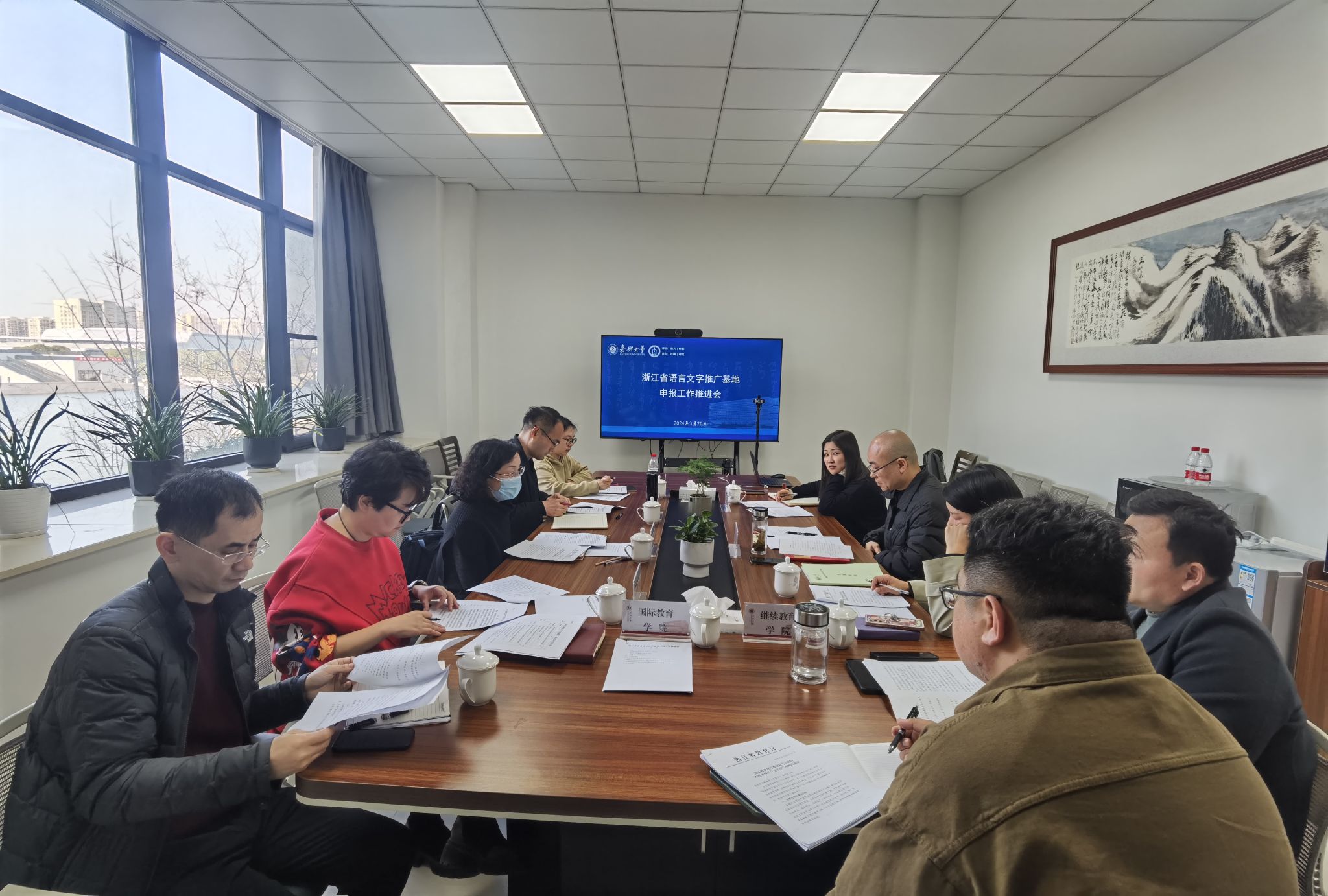 简要介绍了本次浙江省语言文字推广基地申报相关工作及材料提供要求。语委办公室主任对上一轮申报及本次申报表做了详细的说明。工作推进会上,与会人员认真学习了有关语言文字推广基地管理办法、评审标准,细致梳理了学校今年来在语言文字推广方面的各项活动和取得的成效。与会众人表示,会后将对前期工作进行进一步梳理和总结,为本次申报提供助力。