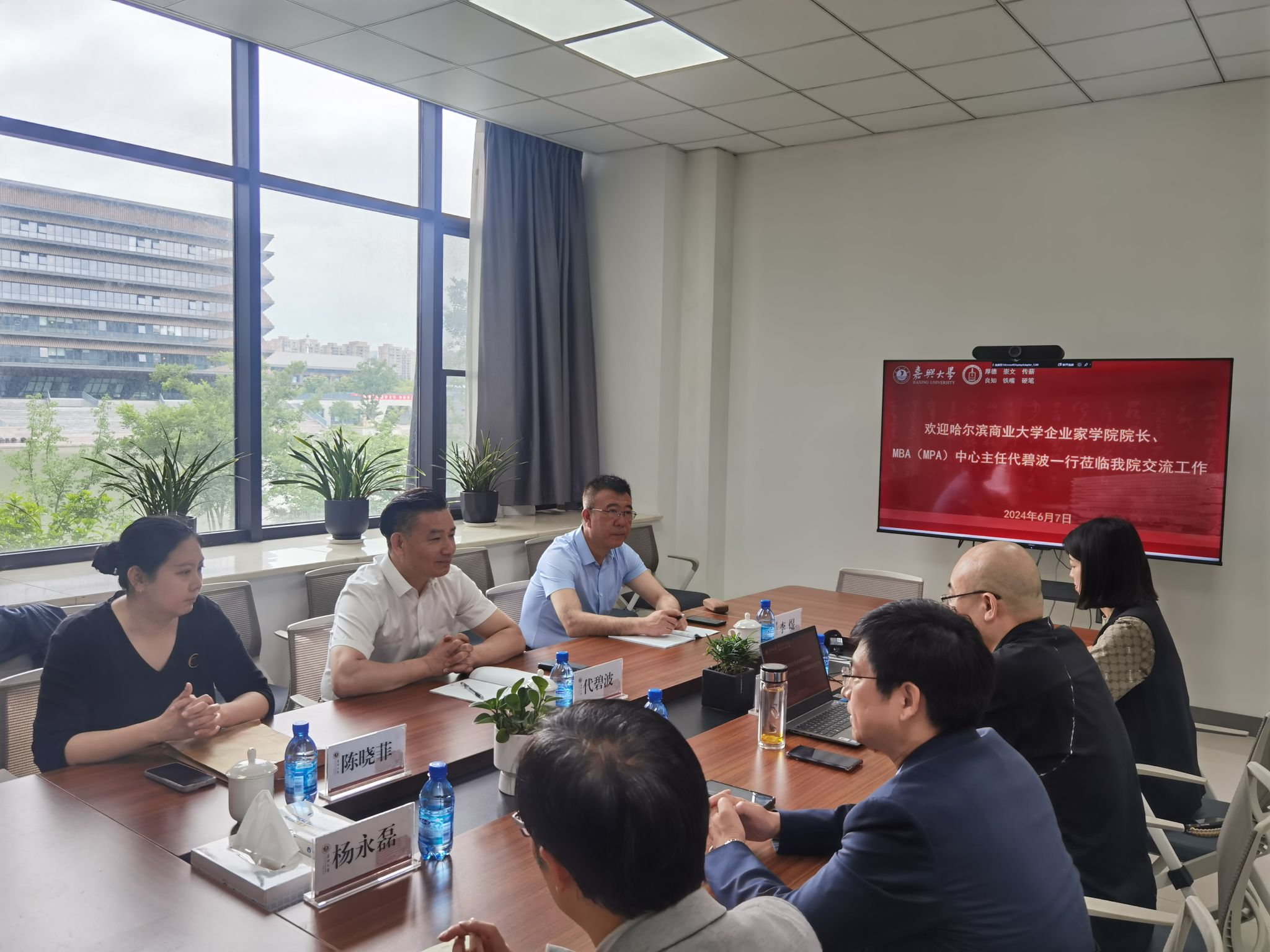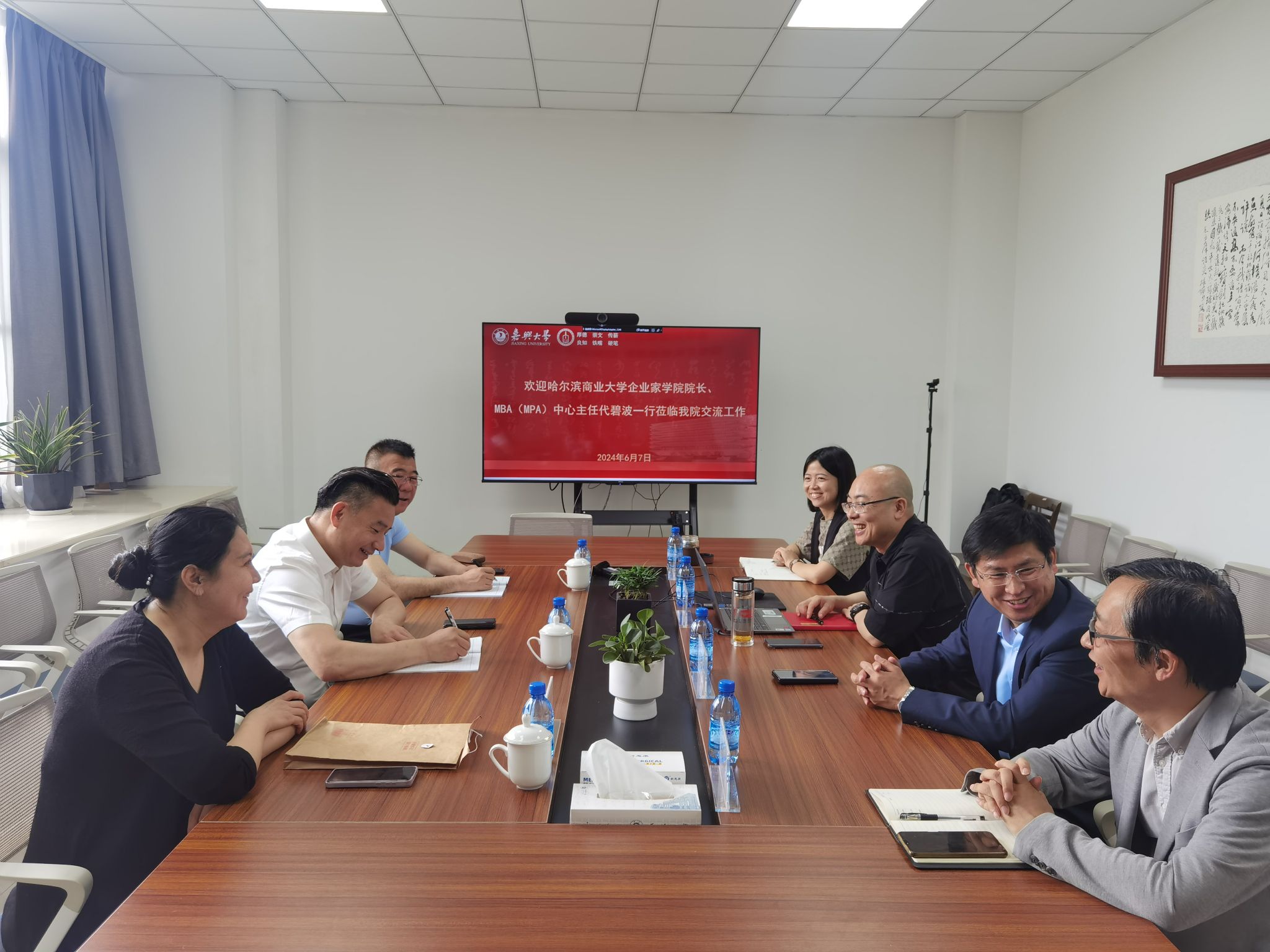 6月7日上午,哈尔滨商业大学企业家学院院长、MBA(MPA)中心主任代碧波一行3人来7ai 交流工作。会议由学院党委书记童建华主持,学院党政领导班子成员参加座谈交流。