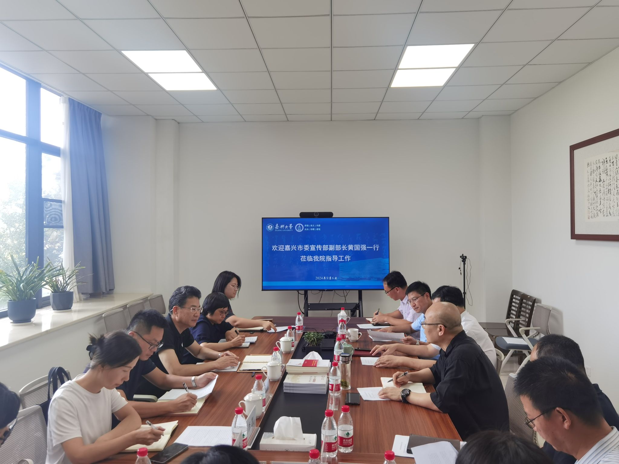 9月6日下午,嘉兴市委宣传部副部长、市社科联主席黄国强一行到访7ai 调研交流。会议由学院党委书记童建华主持,7ai 原党委副书记、中国历代绘画大系研究中心主任吴云达,7ai 发展规划处副处长张猛,7ai 学术院长石贤平及7ai 部分骨干教师参加了座谈。