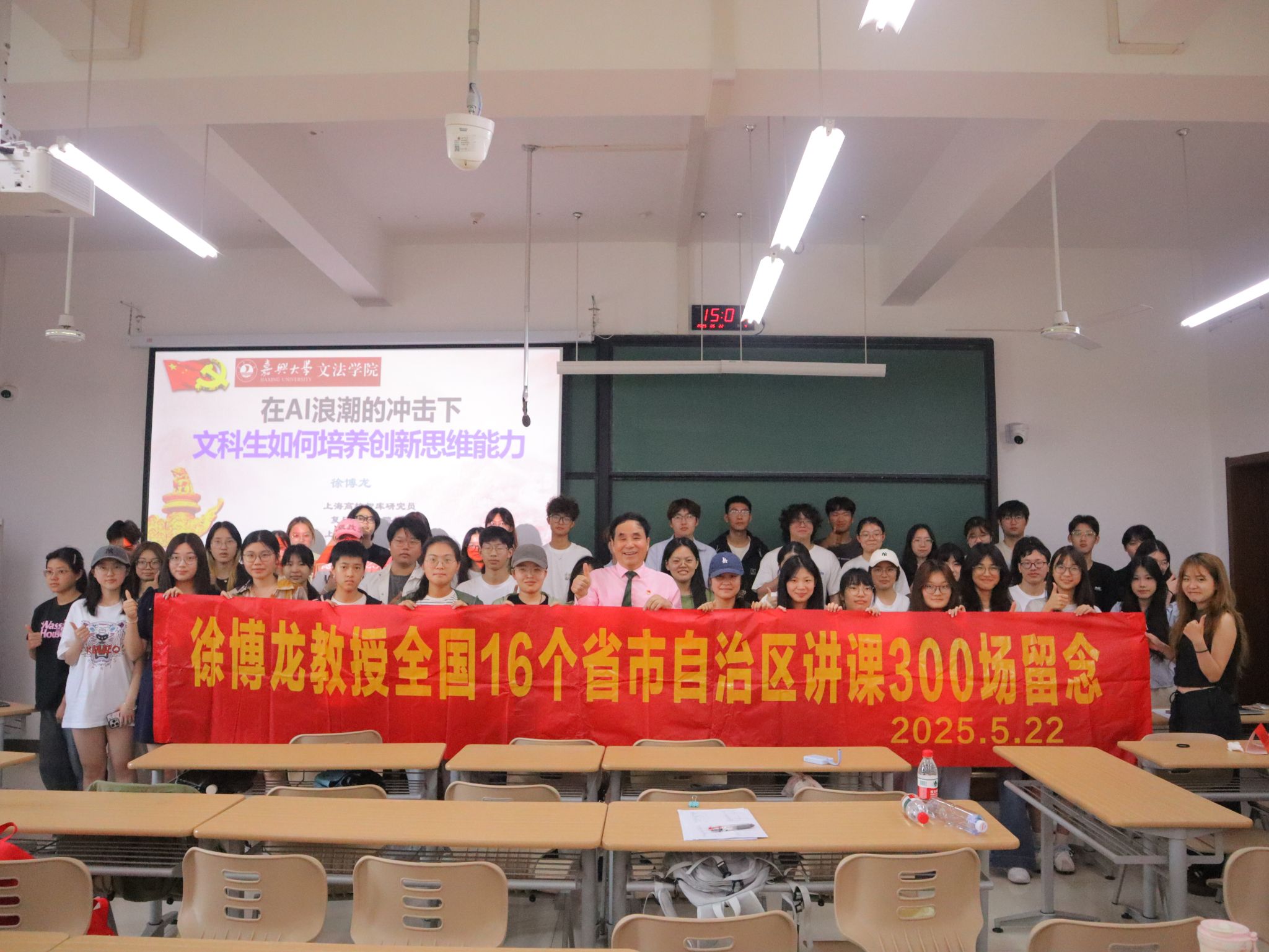 交流并作题为“在AI浪潮的冲击下文科生如何培养创新思维能力”的学术讲座。本次讲座由学院童建华书记主持,全院60余名本科生到场聆听。