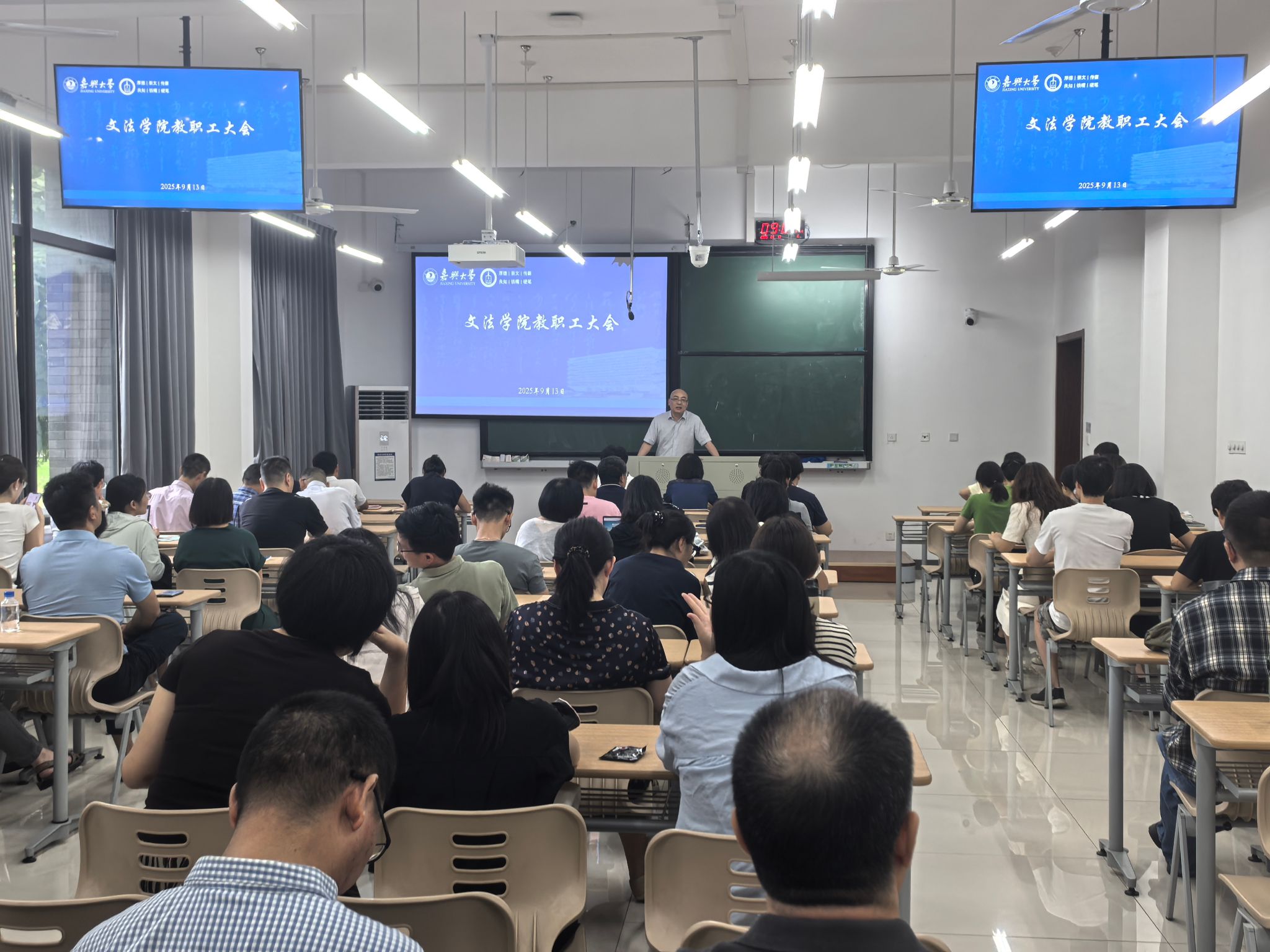 会议强调,2025年是学校“十四五”规划收官之年,也是谋划“十五五”发展的关键之年,要紧密结合学校发展战略,融入学校发展新格局。全院教职工需进一步提高政治站位,凝聚共识、汇聚合力,为加快建设有特色、善创新的综合性高水平大学贡献文法力量。