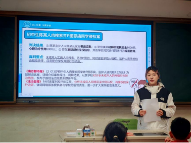 法律援助学会38名学生满怀热忱地走进杭州师范大学附属油车港中学。他们以课堂宣讲、互动问答等丰富且有效的形式,面向该校七年级全体学生((共18个班级),扎实开展了以“向霸凌说‘不’——你的安全,有法可依有处可寻”为主题的法律援助进校园宣传活动。