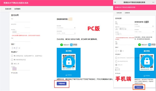 2.下载准考证网址为//pth.7aitv.net/#/query,下载后请自行用A4纸打印。《浙江省普通话水平测试考生健康状况报告表》和准考证在一张A4纸上,无需分开。(建议使用电脑端或非苹果品牌手机进行下载)