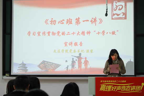 党委书记、副院长洪坚教授给初心后浪宣讲团、初心工作室党支部及初心班的成员做了贯彻党的二十大精神“十学八讲”宣讲报告会。