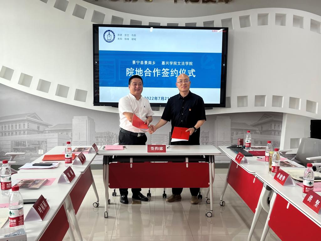 副院长(主持工作)童建华与景南乡党委书记叶星星签订合作协议。