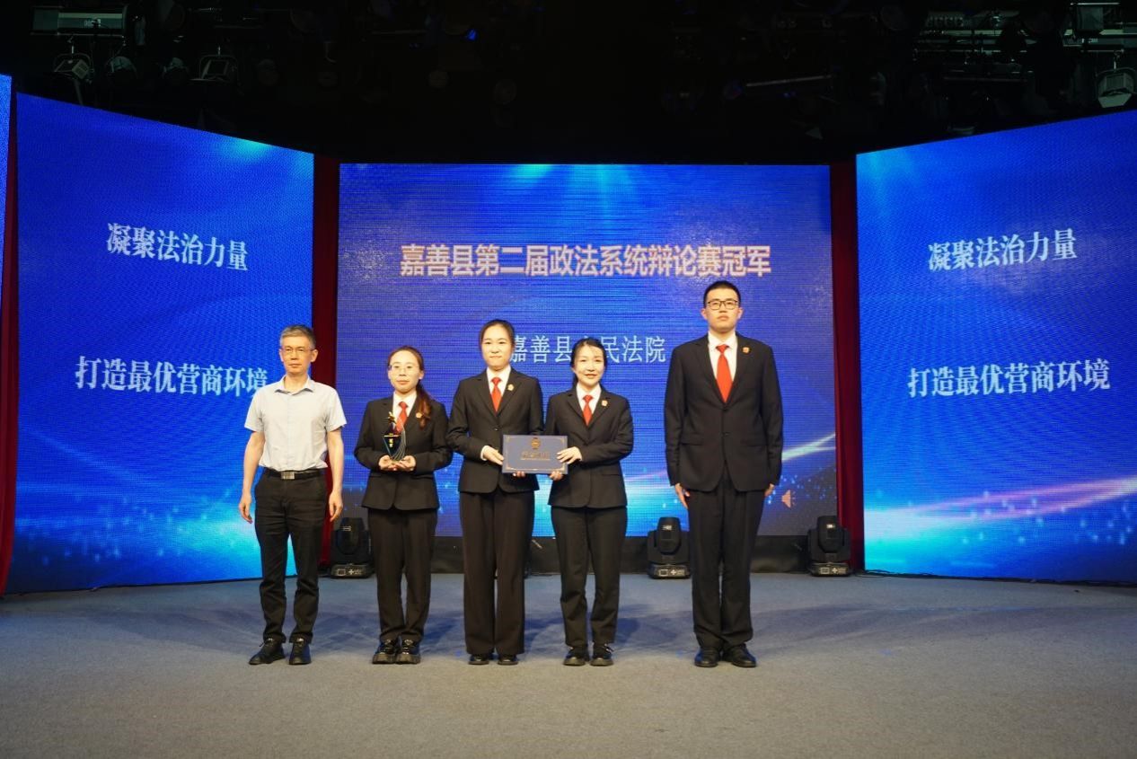 本次辩论赛决赛中,嘉善县司法局辩论代表队和嘉善县人民法院辩论代表队围绕“柔性执法更有利于优化营商环境/刚性执法更有利于优化营商环境”这一辩题展开激烈角逐。