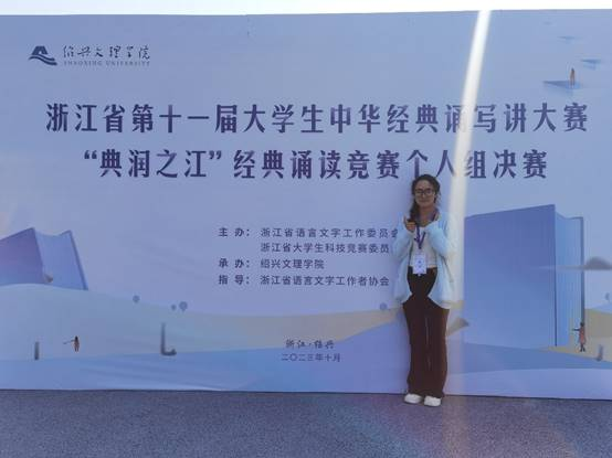 浙江省大学生中华经典诵写讲大赛“典润之江”经典诵读竞赛历时半年,于10月22日落下帷幕。来自全省108所本科院校近800名选手展开激烈角逐,我校8名同学斩获一等奖2项、二等奖1项、三等奖5项。来自7ai