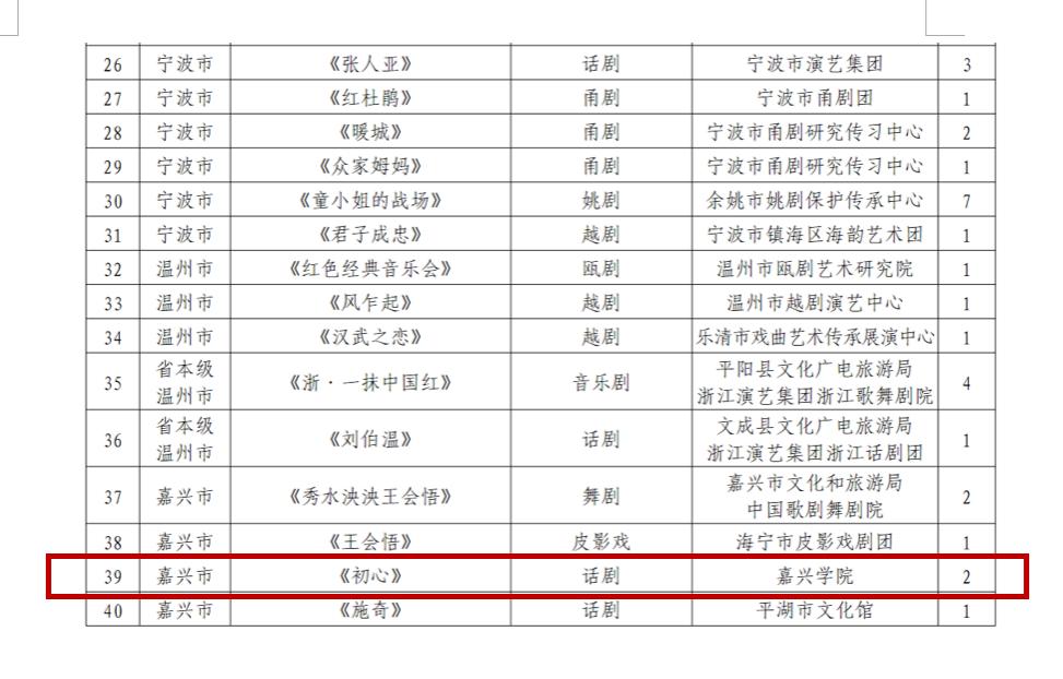 为充分发挥优秀文艺作品的引领示范作用,以艺术的形式唱响主旋律、传递正能量,为庆祝建党百年营造喜庆热烈的文化氛围,5月以来,由中共浙江省委宣传部指导、省文化和旅游厅主办的浙江省庆祝中国共产党成立100周年优秀文艺作品展演展示活动陆续在全省各地联动开展。我校原创红色话剧《初心》入选百场优秀舞台艺术作品展演名单并进行展演多场。